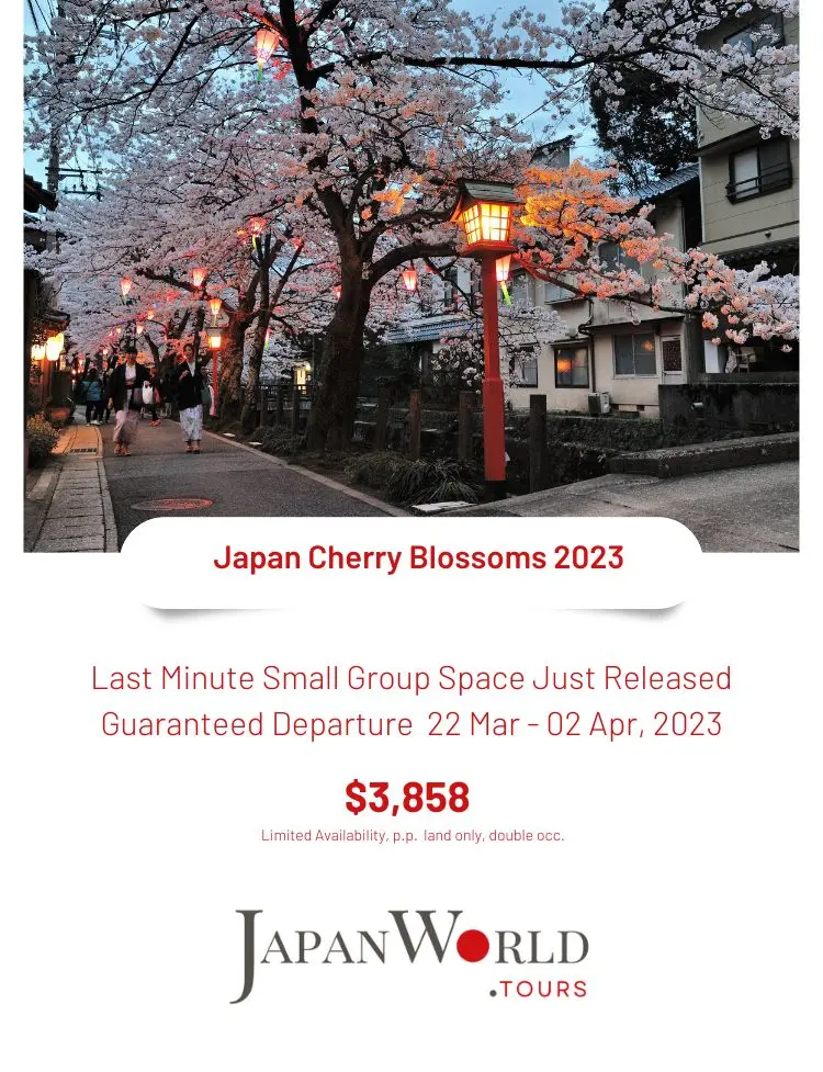 Thank you for your interest in promoting our last minute release 2023 Cherry Blossom Small Group Tour. For more information about the tour click on the image below. Take a minute to register with us and we will email you a non branded PDF copy of the tour which you can send directly to your clients. If you have questions about the tour, please send us an email res@japanworld.tours.